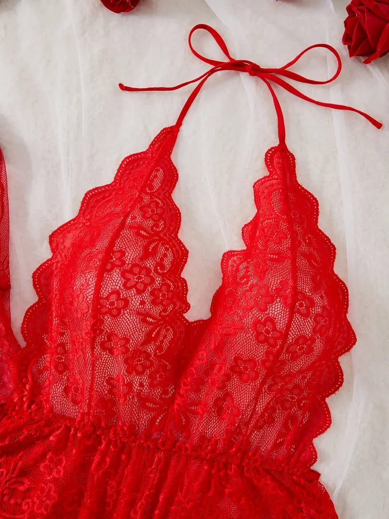 Feminine Lace Bodysuit – Deep Cut Elegance
